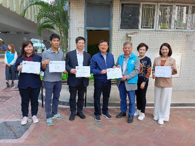 吳錦雲理事長致送感謝狀予 林映惠 葵青區議員, 袁潤洪 葵青區議員, 羅競成先生, BBS, MH, JP, 黃英豪立法會議員,BBS,JP, 葵青區議員 郭芙蓉女士,MH