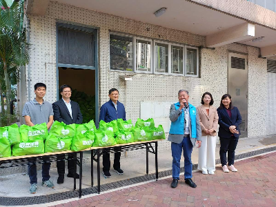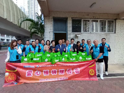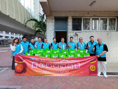 港九木行商會 吳錦雲理事長, 民政及青年局副局長 梁宏正先生, BBS, JP, 民建聯觀塘支部主席 柯創盛先生,MH 及商會理事 何志恆 派送福袋